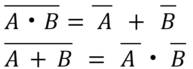 復習となりますが、「 」は否定(NOT)、「・」は論理積(AND)「+」は論理和(OR)を表しています。ベン図を描いていただいたらこの2式の左辺と右辺が等しいことがわかります。この形がでてきたら「ド・モルガンの法則」が使えるかも。と疑ってみてください!