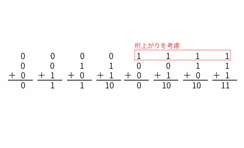 また「加算回路」には「半加算器」「全加算器」の2種類が存在しています。