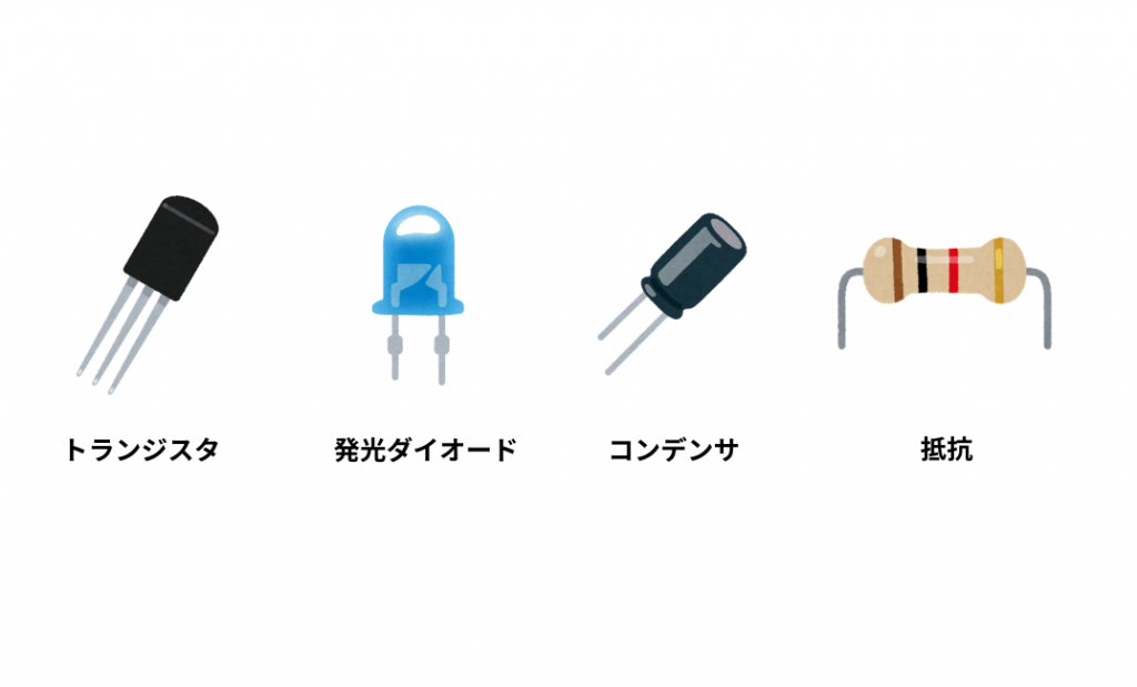 トランジスタ、ダイオード、コンデンサ、抵抗とか名前は聞いたことはあるけどどういうものかわからないという方向けに簡単に説明します!
