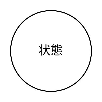 上記表を見ると、現在の扇風機の「状態」が「入力(ボタン押下)」でどのように変化するかを読み取ることができます。例えば現在の状態が「中」の時に入力(強ボタン押下)を行うと扇風機の状態は「強」へと変化していることがわかります。